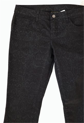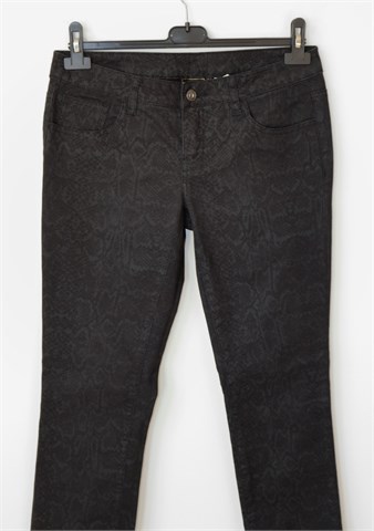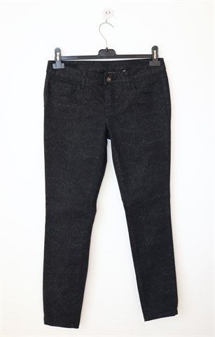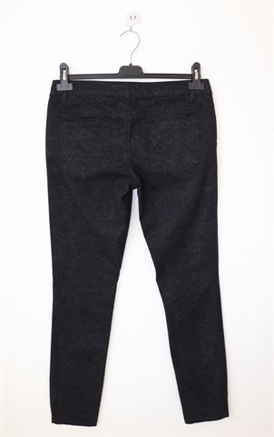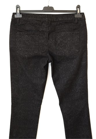 Rainbow traper hlače crne boje sa printom (uzorak printa vidljiv na slikama). Prednji cif i kopčanje, pasica za remen. Prednji i stražnji džepovi. Skinny model, rastezljive.