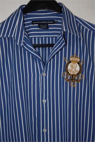 Ralph Lauren Sport košulja sa dugim rukavima, plave boje sa bijelim prugama. Prednje kopčanje, blago strukirana. Sa prednje strane prišivak sa logom. Čvrst i kvalitetan pamuk.