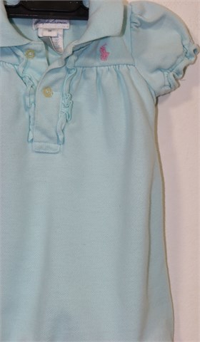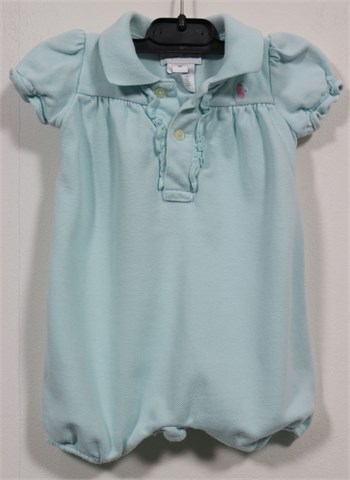 Ralph Lauren body sa kratkim rukavima, svijetlo plave boje. Polo kragnica, prednje kopčanje i kopčanje sa drukerima između nogu. Mali rozi logo na prsima, blago rastezljiv.
