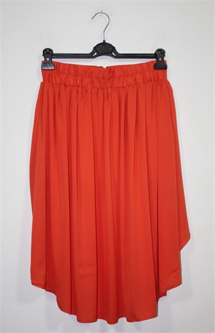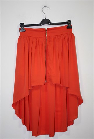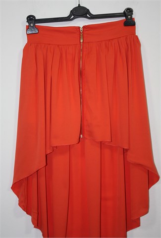 Red Queen suknja narančaste boje (lijepa zagasita nijansa), asimetričnog kroja (duža sa stražnje strane - vidjeti slike). Sa prednje strane cif, sa stražnje strane pasica rastezljiva. Djelomično podstavljena (kraći dio).