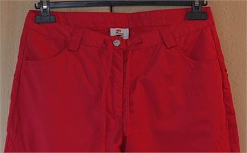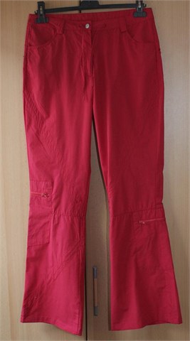 Prednji cif i kopčanje. Pasica za remen i špagice za zatezanje u struku. Džepovi na nogavicama, bočni prednji džepovi. Nisu rastezljive. Skraćivane.