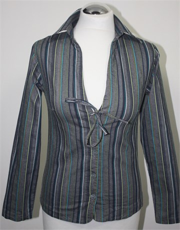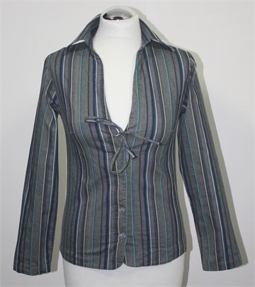 Redal košulja sa dugim rukavima, prošarano sive boje sa šarenim prugama. Prednje kopčanje i vezanje sa vezicama. Strukirana, vrlo rastezljiva.