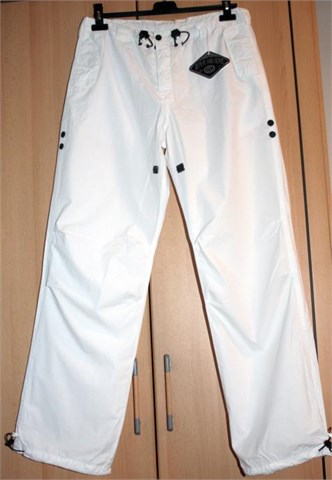 Ljetne cargo hlače, širih nogavica. Vrlo lagane i prozračne, idealne za ljeto. Špagice za zatezanje u struku i na rubovima nogavica. Prednji cif i kopčanje, pasica za remen. Prednji bočni i stražnji džepovi na čičak.