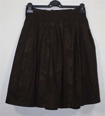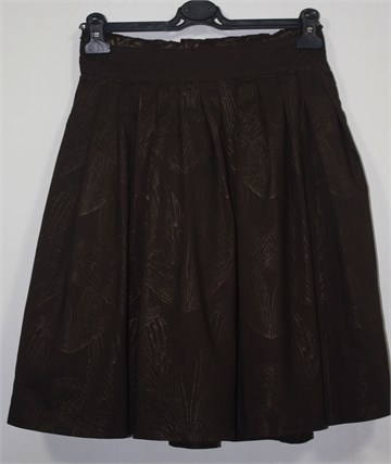 Reserved suknja tamno smeđe boje sa zlaćanim printom. Bočni cif, podstavljena. Prekrasna suknja lepršavog kroja.