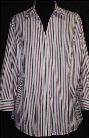 Riders by Lee košulja sa poludugim rukavima, bijele boje sa prugama u raznim bojama. Prednje skriveno kopčanje, prednji i stražnji ušitci (strukirana). Blago rastezljiva.