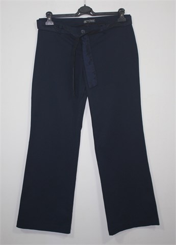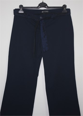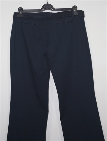 Rinascamento prekrasne pamučne hlače tamno plave boje sa satenskim remenom. Prednji cif i kopčanje, pasica za remen. Stražnji ukrasni džepovi (obrubljeni satenom). Blago rastezljive.