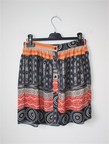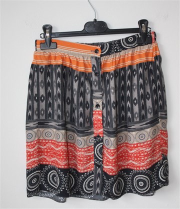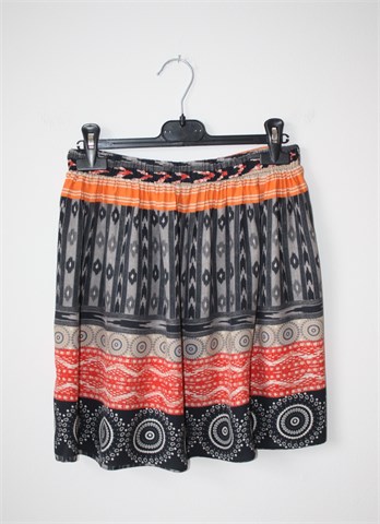 River Island suknja sa šarenim printom (boje i uzorak printa vidljivi na slikama). Prednje kopčanje, gumica sa stražnje strane pasice (prilagodljiva širina - vidjeti mjere). Tanka i lagana.