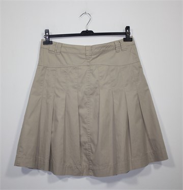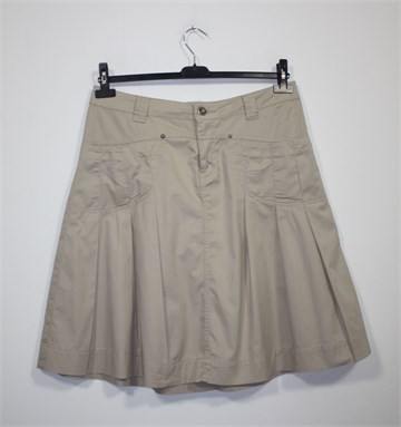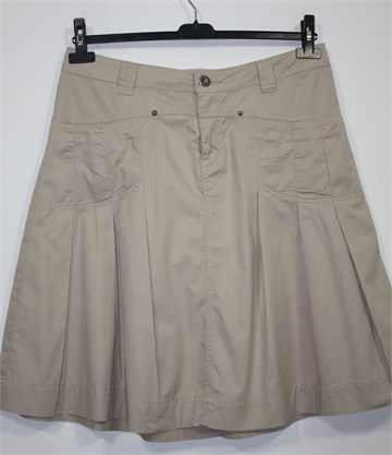 RoseBud suknja svijetlo bež boje. Prednji cif i kopčanje, pasica za remen. Prednji džepovi, faldice sa prednje i stražnje strane. Tanji pamuk.