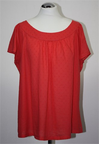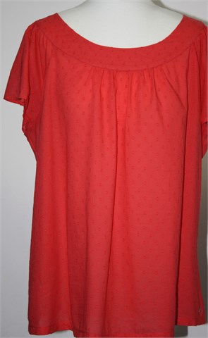 S. Oliver bluza sa kratkim rukavima, koraljno-narančaste boje sa sitnim uzorkom na tkanini. Mekan, lagan i prozračan pamuk.