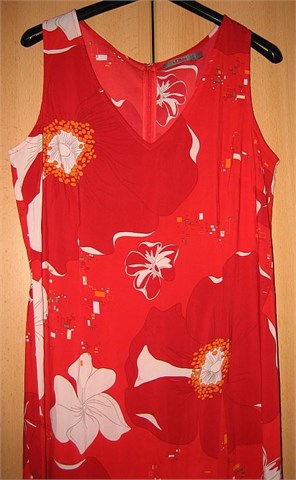 Lagana, ljetna haljina sa cvjetnim printom. Blagi V otvor, bez rukava. Cif na leđima. Ušitci, strukirana. Blago rastezljiva.