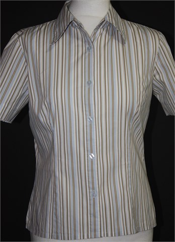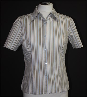 S. Oliver košulja sa kratkim rukavima, bijele boje sa prugama. Prednje klasično kopčanje, prednji i stražnji ušitci (strukirana). Blago rastezljiv materijal.