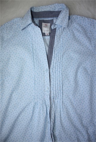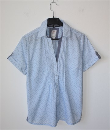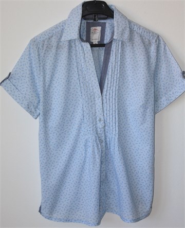 S. Oliver košulja sa kratkim rukavima, svijetlo plave boje sa plavim printom pera. Prednje kopčanje, prednji ukrasni prošivi. Nije rastezljiva.