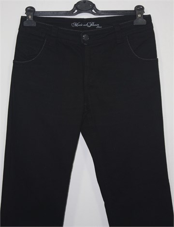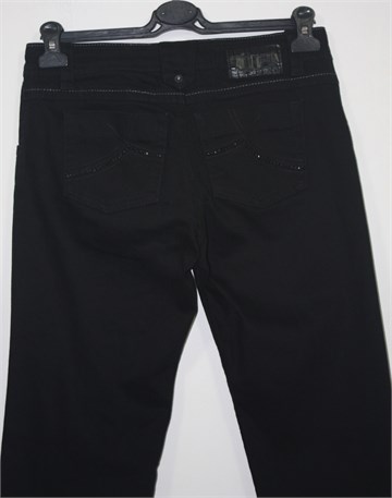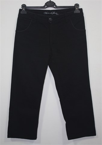 S. Oliver poluduge traper hlače, crne boje. Prednji cif i kopčanje, pasica za remen. Prednji i stražnji klasični džepovi (ukrašeni prošivima od konca, stražnji sa ukrasnim perlicama). Blago rastezljive.