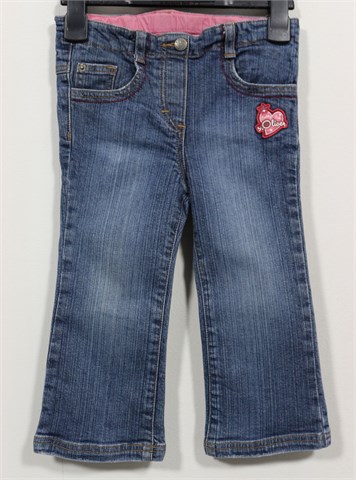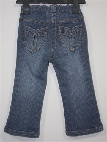 S. Oliver traper hlače srednje plave boje, used look. Aplikacije s prednje i stražnje strane. Prednji gumbić, pasica za remen. Prednji i stražnji džepovi. U struku je gumica pa je širina prilagodljiva (unutar pasice regulacija širine struka). Rastezljivi traper.