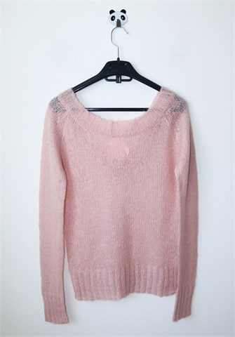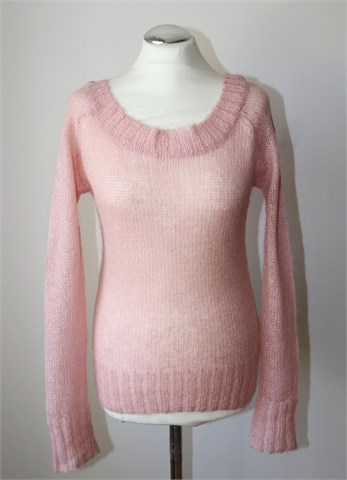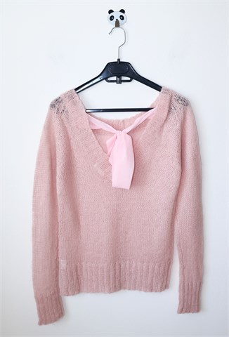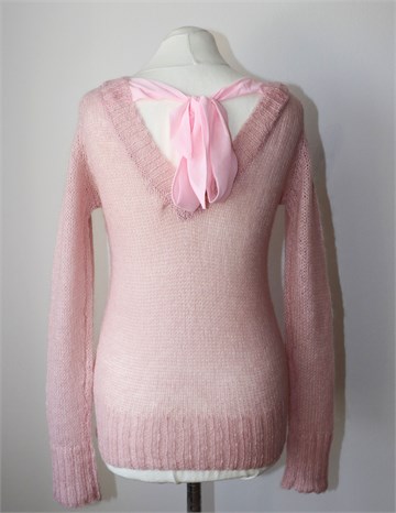 SM2 vesta sa dugim rukavima roze boje. Pletivo je tanje, rupičasto i mucasto, rastezljivo. Sa stražnje strane vrpce od tilastog materijala koje se vežu u mašnu.