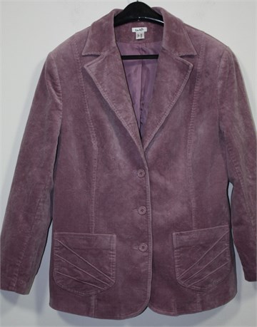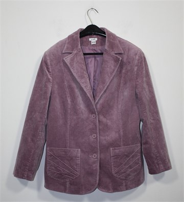 SObinICH sako/jakna od plišastog samta, lijepe svijetlo ljubičasto-lila boje. Prednje kopčanje, bočni džepovi sa ukrasnim prošivima. Jastučići u ramenima (ušiveni), podstavljen. Rastezljiv materijal.