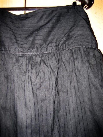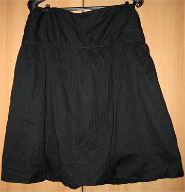 Sastav: 100% pamuk Lagana, ljetna. Podstavljena. Bočni cif. Blage faldice, nabrana na bokovima. Na donjim rubovima suknja je preklopljena i ide u lagani puf. Nije rastezljiva.