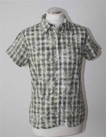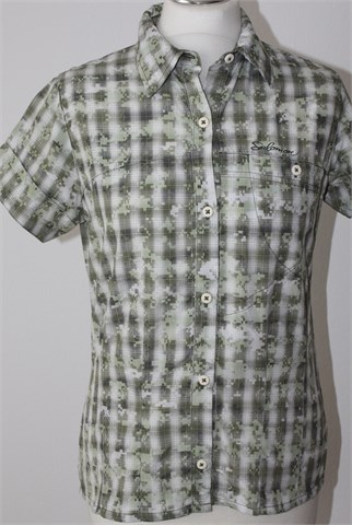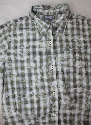 Salomon ActiLit košulja sa kratkim rukavima, bijelo-zelene boje s uzorkom (vidljivo na slikama). Prednje kopčanje, džepić sa gumbom na prsima. Strukirana, tanja i lagana.