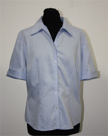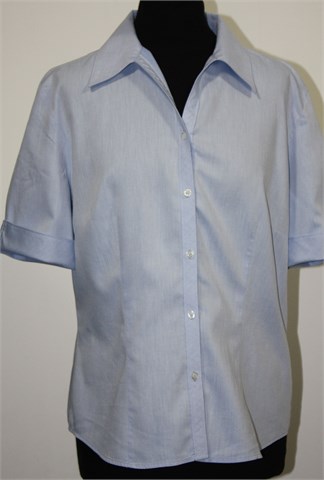 Seiden Sticker košulja sa kratkim rukavima, prošarano svijetlo plave boje (boja malo podsjeća na boju trapera). Prednje kopčanje, podvinuti rukavi, blago strukirana. Izuzetno mekan i kvalitetan pamuk.