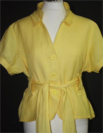 Sherry Taylor kraći sako ili jakna, lijepe žute boje. Prednje kopčanje i vezanje u struku, prednji i stražnji ušitci, podstavljena u gornjem dijelu. Vrlo lagana i prozračna, idealna za razne kombinacije (casual ili svečanije).