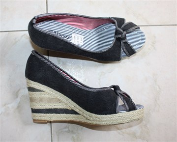 Simmy (Mass shoes) špagerice/sandale sa punom petom//platforme tamno sive boje (unutar cipele oznaka boje je crna ali su tamno sive), unutrašnjost prugasta (crveno-bijela i plavo-bijela). Gumeni džon, kombinacija špage i materijala na petama (vidjeti slike).