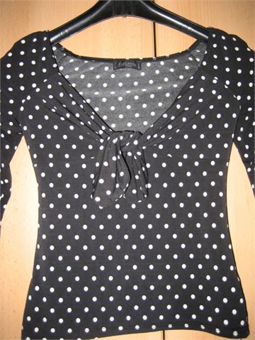 Sastav: 92% poliester 8% spandex Poludugi rukavi. Širi otvor. Na prsima trakice koje se vežu u mašnu. Jako rastezljiva. Na majici piše da je francuska veličina T1.