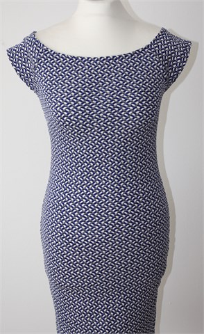 Sinsay haljina sa malim rukavima, kombinacija uzorka je plavo-bijelo-crna (vidljivo na slikama). Rastezljiva.