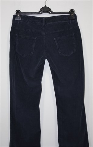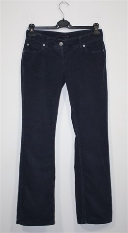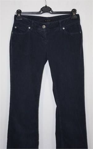 Sisley hlače od samta, sivo-plave boje. Prednje kopčanje, pasica za remen. Prednji i stražnji džepovi. Mekan i blago rastezljivi samt.