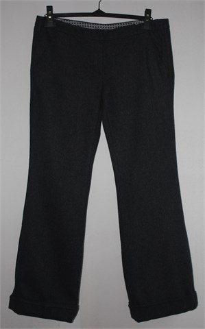 Sisley zimske vunaste hlače, prošarano sive boje. Mekan i mucasti materijal, vrlo tople. Hlače imaju prednji cif i kopčanje, prednje bočne džepove i jedan stražnji ukrasni džep.