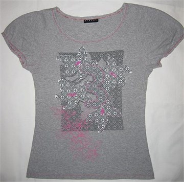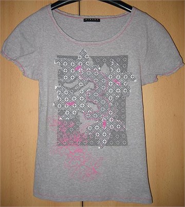 Sastav: 100% pamuk Kratki rukavi sa gumicom. Majica je obrubljena rozim koncem. Kombinacija printa i aplikacije na prednjoj strani. Mekan i rastezljiv pamuk. Na majici piše veličina M.