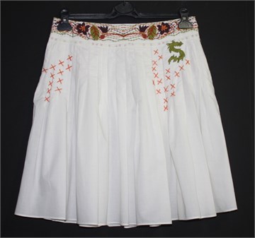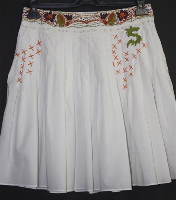 Sisley pamučna suknja bijele boje, s ukrasnim aplikacijama od konca. Bočni cif, nema podstavu.