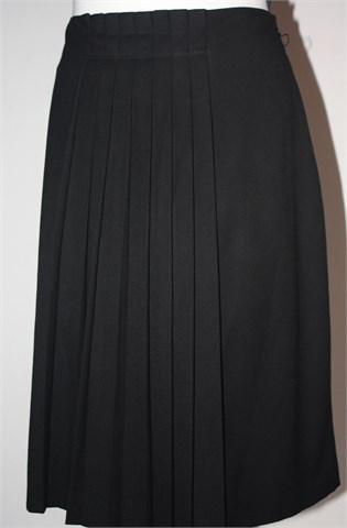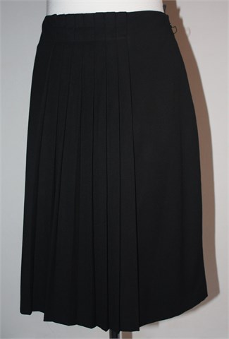 Sisley suknja crne boje sa prednjim faldama (plisirana). Klasičnog kroja, vrlo jednostavna i lijepa. Ima bočni cif i podstavljena je.