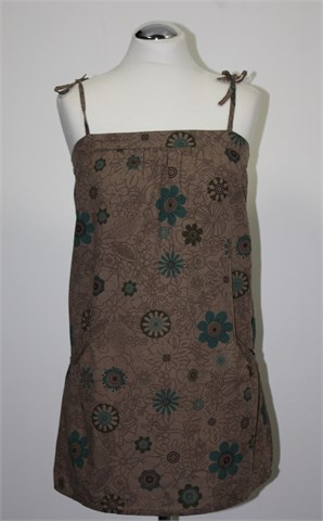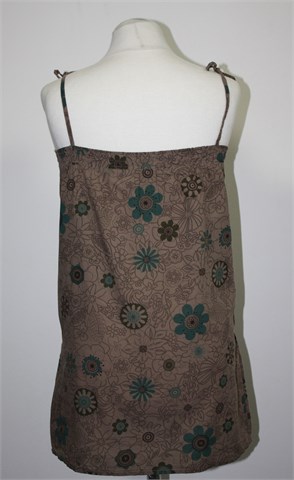 Somewhere bluza sa tankim naramenicama (vežu se na željenu dužinu), smeđe boje sa cvjetnim printom. Džepići sa prednje strane, prošivena sa gumicama na leđima. Lagan i tanji pamuk.