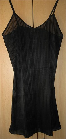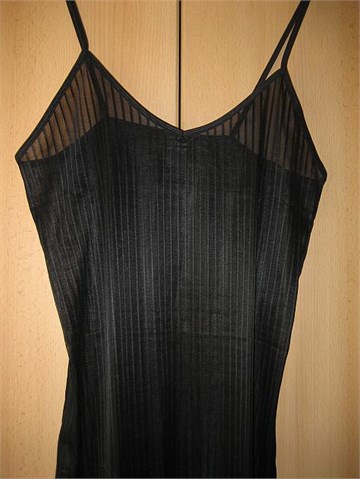 Sastav: 97% poliester 3% elastin Tanke, fiksne naramenice. Pruge cijelom dužinom, prilično prozirna. Nova, samo oprana. Nije nošena. Blago rastezljiva.