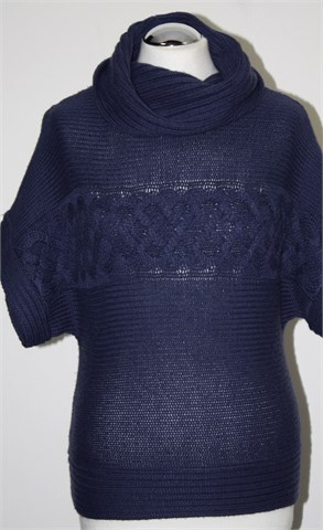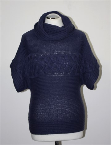 Spot vesta/dolčevita sa kratkim i širokim rukavima, ljubičasto-plave boje. Pletivo srednje debljine, rastezljivo.