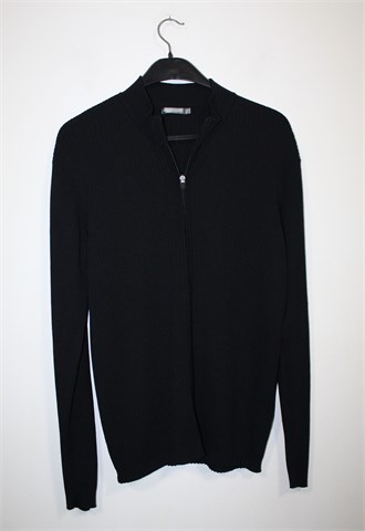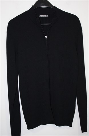 Springfield vesta sa prednjim kopčanjem na cif, crne boje. Rebrasto i rastezljivo pletivo, srednje debljine.