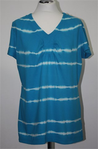 St. Johns Bay majica sa kratkim rukavima, tirkizno plave boje sa bijelim uzorkom (kao na slici). Preštepani detalji oko dekoltea. Deblji i kvalitetan pamuk, mekan i blago rastezljiv.