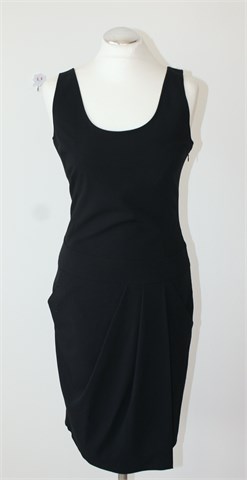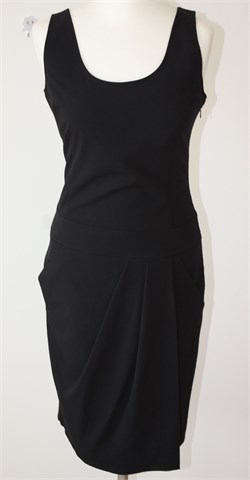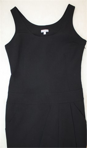 Stefanel haljina bez rukava, crne boje. Prednji bočni džepovi, donji dio haljine sa fiksnim preklopom. Bočni cif, blago rastezljiva.