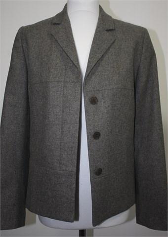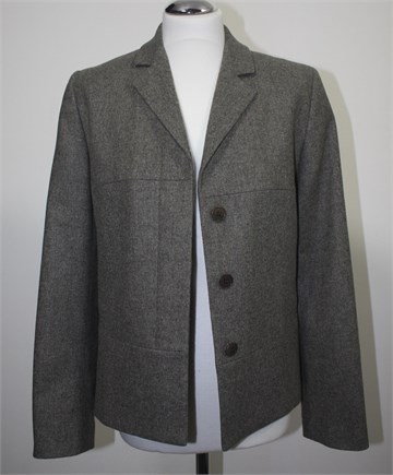Stefanel sako/kaputić prošarano smeđe-zelenkaste boje. Prednji bočni džepovi (još uvijek zašiveni), prednje skriveno kopčanje na gumbe. Podstavljen, blagi jastučići u ramenima.
