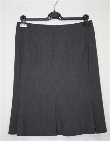 Stefanel suknja prošarano sive boje, materijal je tanji i lagan štof. Prednji i stražnji ukrasni ušitci, stražnji cif. Blago rastezljiva, nešto duža sa stražnje strane (vidjeti mjere).