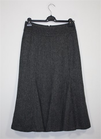 Steilmann suknja midi dužine, prošarano (špricano) crno-bijele boje. Ukrasni prošivi na pasici, falde na dnu suknje. Materijal je mekani i blago rastezljivi štof/tvid. Stražnji cif, podstavljena i blago rastezljiva.