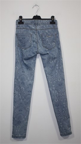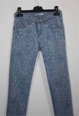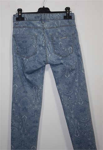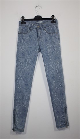 Stradivarius traper hlače od tanjeg, mekanog i rastezljivog trapera - svijetlo plave boje sa bijelim uzorkom na materijalu (vidljivo na slikama). Prednji cif i kopčanje, pasica za remen. Prednji i stražnji klasični džepovi. Cifovi sa vanjske strane nogavica.