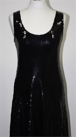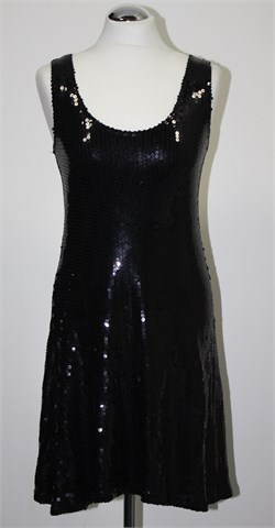 Strass haljina/tunika bez rukava, crne boje sa našivenim šljokicama. Podstavljena u gornjem dijelu, rastezljiva.