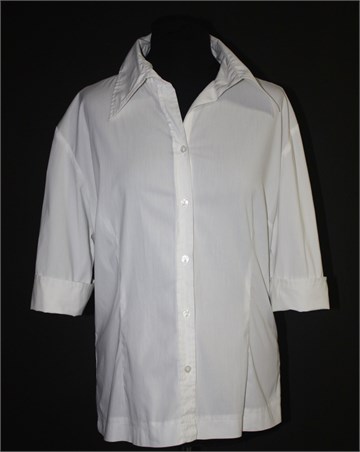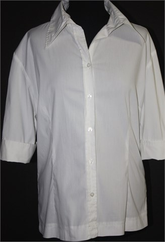 Street One košulja sa poludugim rukavima, bijele boje. Prednje kopčanje, prednji i stražnji ušitci (blago strukirana). Mali bočni prorezi, gumbići i prorezi na krajevima rukava. Tanji i rastezljiv materijal.