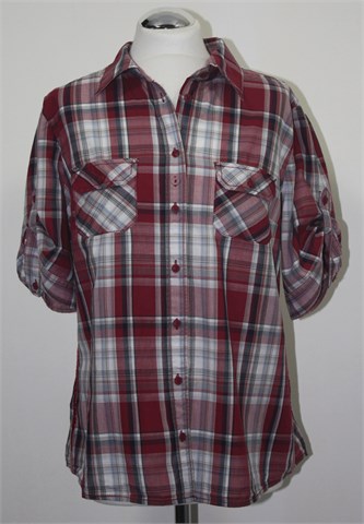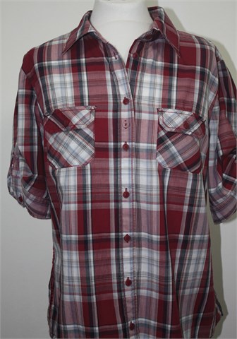 Street One košulja sa kratkim rukavima, prugasto/kariranog uzorka. Prednje kopčanje, džepići na prsima. Prednji i stražnji ušitci (blago strukirana), nije rastezljiva.