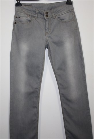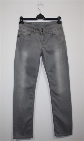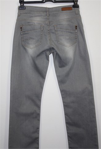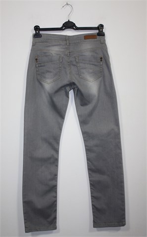 Street One traper hlače sive boje, mjestimično ispranog izgleda (tvornički). Prednji cif i kopčanje, pasica za remen. Prednji i stražnji džepovi. Blago rastezljive. Oznaka modela - Lysann long.