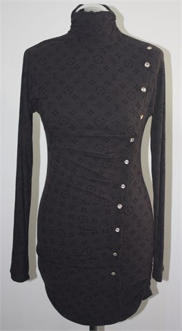 Tunika/poludolčevita prošarano smeđe boje sa crnim printom. Ukrasni gumbići, bočno stegnuta gumicama. Mekan i rastezljiv materijal.