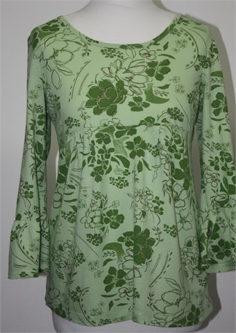 Style&Co majica sa poludugim rukavima, zelene boje sa lijepim cvjetnim printom. Rezana ispod grudi, prema dolje se blago širi pa nije uz tijelo. Jako mekan i blago rastezljiv materijal.