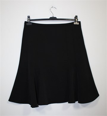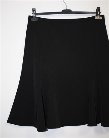 Style suknja crne boje, ukrasni prošivi sa prednje i stražnje strane. Bočni cif, čvrst i blago rastezljiv materijal, vrlo blago sjajan.