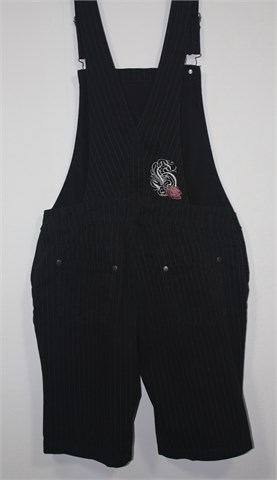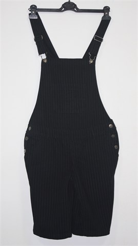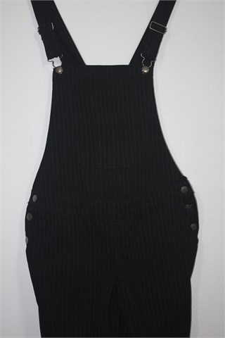 Sublevel hlače sa tregerima, crne boje sa svijetlim prugama. Prednji džepovi i bočni gumbi, pasica za remen. Džepovi na prsima. Stražnji džepovi i aplikacija od konca. Čvrst ali mekan pamuk.